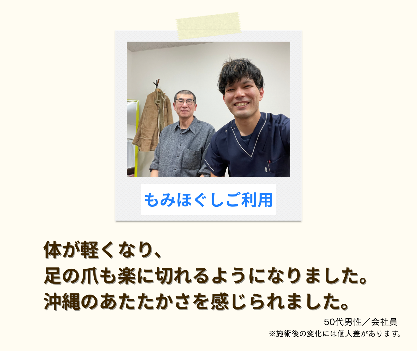 ◯病院勤務10年の経験豊富な元リハビリ職が施術。